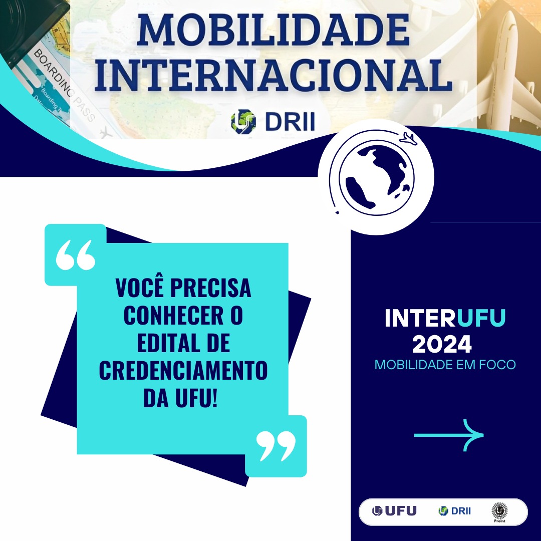 A Diretoria de Relações Internacionais e Interinstitucionais (DRII) da Universidade Federal de Uberlândia (UFU), juntamente com seu Comitê de Programas de Mobilidade (CPM), torna público o presente edital de credenciamento para homologar e pré-classificar discentes dos cursos de graduação de todas as áreas do conhecimento desta universidade que desejam se candidatar às vagas ofertadas pelos programas de mobilidade internacional (com exceção dos programas BRAFITEC e EIFFEL), na modalidade presencial, por meio de editais de chamadas complementares lançados entre 01/01/2025 a 30/06/2025.