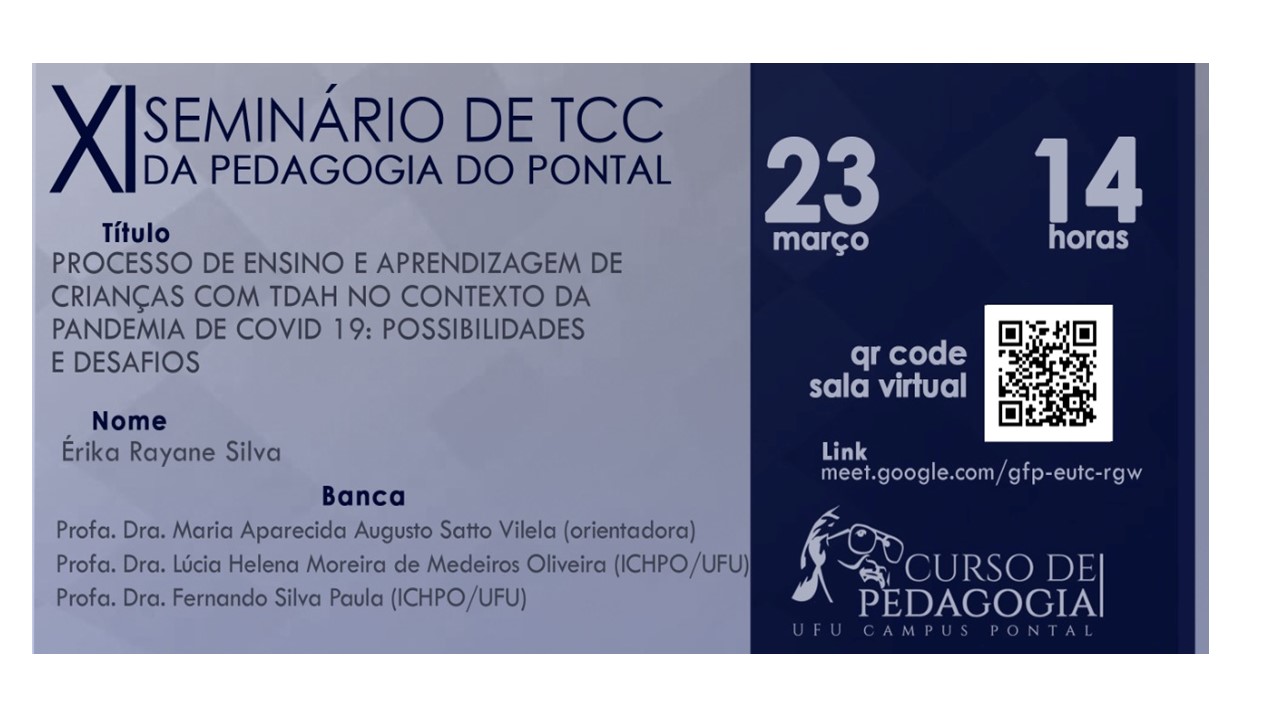 "Processo de ensino e aprendizagem de crianças com TDAH no contexto da pandemia de Covid-19: possibilidades e desafios" - Érika Rayane Silva