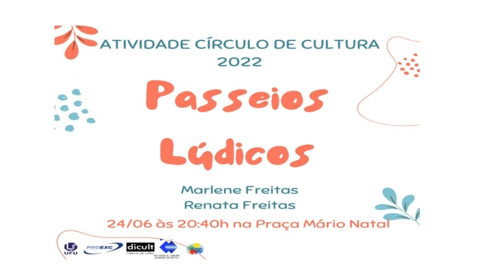 AconteceCírculo de Cultura 2022- Passeios Lúdicos by Josely AlvesPublished: 24/06/2022 - 10:34Last modification: 24/06/2022 - 10:34 Compartilhe no FacebookTweet Widget Whatsapp Whatsapp Google Plus One ATENÇÃO!!! Mais uma atividade do Círculo de Cultura 2022 acontece nesta sexta-feira dia 24/06. Não deixe de participar!!!!